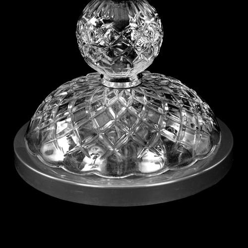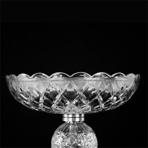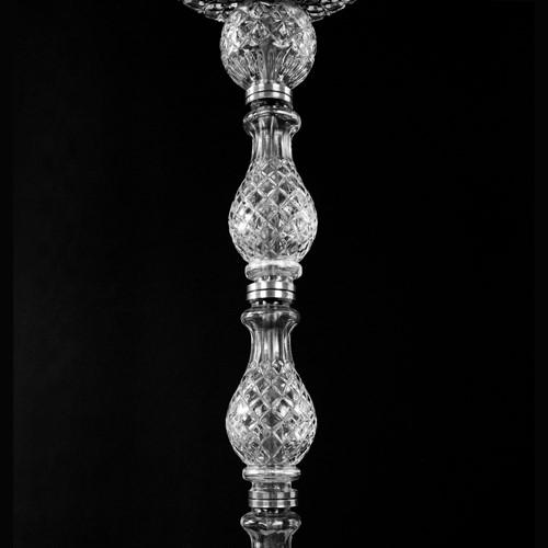 Centrotavola in vetro cristallo veneziano, colore puro con incisioni decorative lungo tutta la superficie, finiture cromo. Le dimensioni importanti di questo centrotavola lo rendono un prodotto di grande impatto decorativo, l'ideale per allestire importanti allestimenti wedding, così come per altre tipologie di eventi, scenografie, etc. Nonostante l'altezza, questo centrotavola ha un'elevata stabilità.