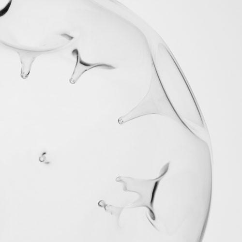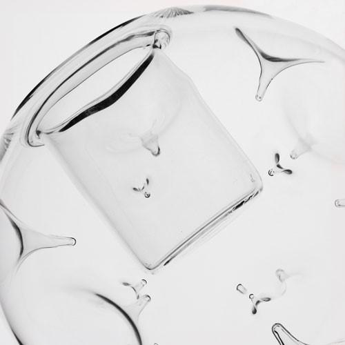 Vaso in vetro color cristallo trasparente Ø12 cm a forma di sfera e decorato con una lavorazione artigianale che crea spine entranti all'interno del volume. La bocca del vaso ospita un bicchiere in vetro estraibile che può contenere varie tipologie di candela tra cui le tealight.