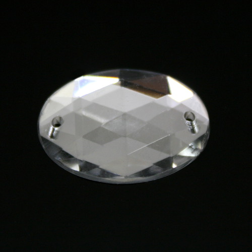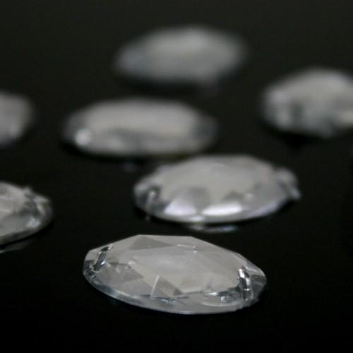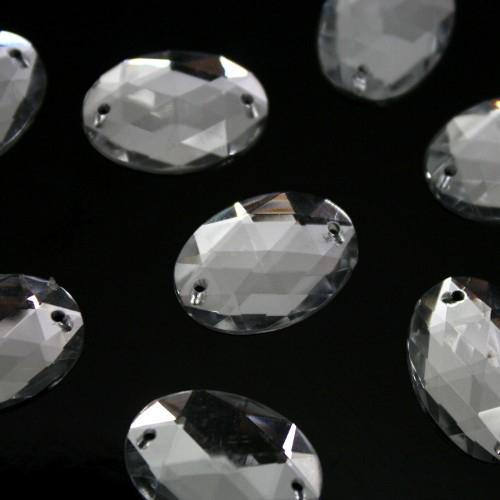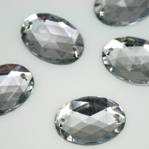Pietra ovale 18 mm cristallo da cucire acrilico sfaccettato, doppio foro. Cristallo in metacrilato (PMMA) con fondo piatto a specchio, dotato di buona brillantezza e resistenza meccanica. Prodotto eccellente per aggiungere punti luce a tessuti e accessori, ma anche per realizzazioni piu' vaste, dove e' necessario creare allestimenti molto luminosi e suggestivi, con budget limitati. Ogni cristallo ha due fori che ne consentono l'applicazione sui piu' svariati supporti.