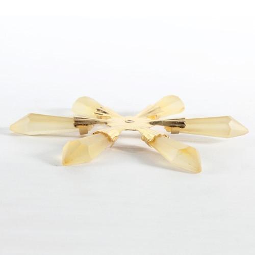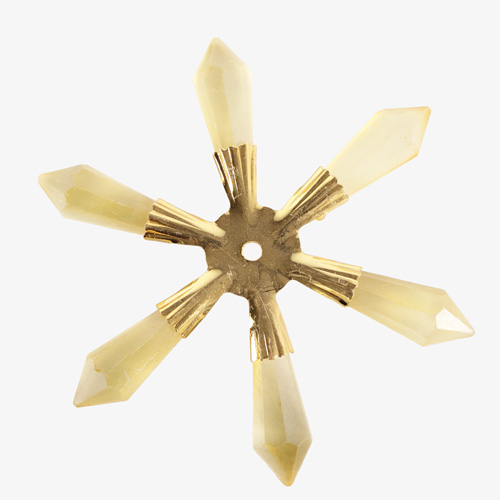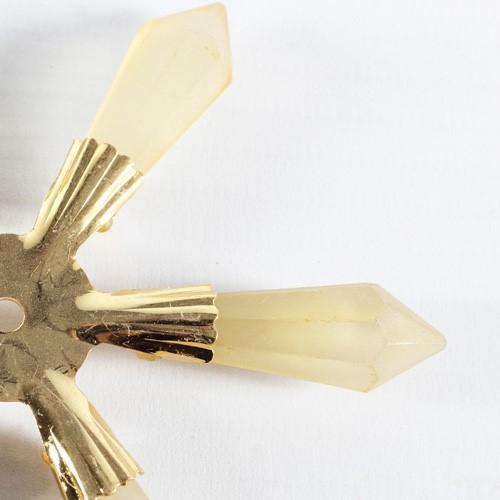 Pendente di cristallo a forma di stella o fiocco di neve da 100 mm composto da una struttura metallica dorata che unisce 5 punte a forma di prisma di color giallo satinato. Il pendente è dotato di un foro passante per facilitare la realizzazione di ghirlande, festoni natalizi o tendaggi da impiegare come addobbo natalizio per la casa o per l'albero di Natale. Il prodotto è vintage, di produzione italiana anni '80, mai usato. E' disponibile fino a esaurimento scorte, in quanto proviene dai magazzini di una fabbrica ormai chiusa. Le superfici possono presentare segni dovuti al normale passare del tempo, consultate le foto per maggiori dettagli. Sono prodotti solitamente difficili da trovare sul mercato, proposti fino ad esaurimento scorte con un prezzo di assoluta convenienza. Scoprili tutti!