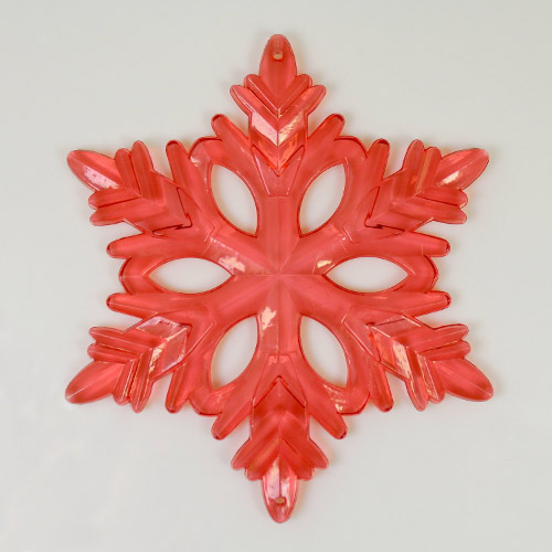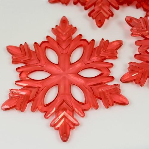 Fiocco di neve classico 130 mm acrilico color rosso, 2 fori.