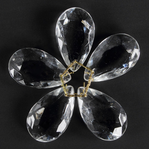 Fiore di mandorle sfaccettate colore cristallo trasparente Ø80 mm con clip oro. La forma a fiore che assume questa composizione è creata dall'unione di 5 mandorle sfaccettate cristallo trasparente. Ogni mandorla è munita di foro nella quale sono state inserite clip oro. Ideali per la creazione di centrotavola scenografici, segnaposto, bomboniere artigianali, decorazioni per Natale e tutto ciò che può essere d'ispirazione. Questi articoli sono prodotti vintage anni 80' e provengono da una fabbrica ormai chiusa: per questo presentano qualche imperfezione. Tuttavia questa può essere un'occasione unica per creare oggetti dedicati all'home decor a buon prezzo. Visitate le aree delle categorie per saperne di più sugli altri prodotti disponibili.
