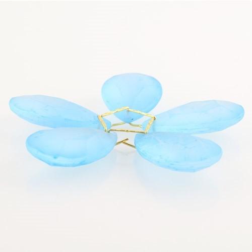 Faceted crystal flower in satin-finish aquamarine glass Ø80 mm with gold clip, decorative composition