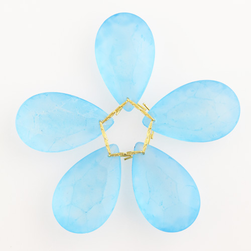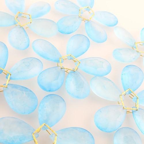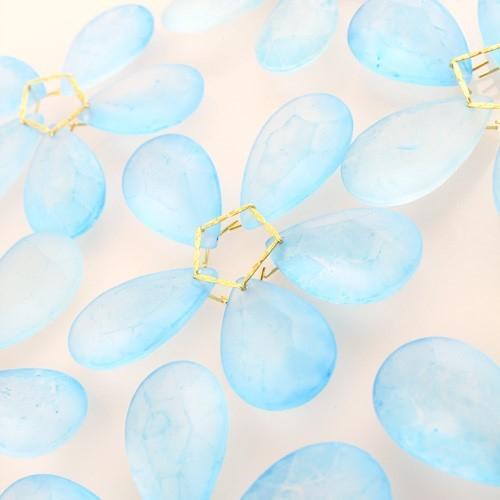 Faceted almond flower color aquamarine satin Ø80 mm with golden clips. The decorative flower is formed by 5 petals faceted almonds joined together by metal clips. The element was born for decorative lighting, and everyone can express their imagination by creating new and imaginative chandeliers, or centerpieces, place cards, home decorations and decorations for the Christmas tree.