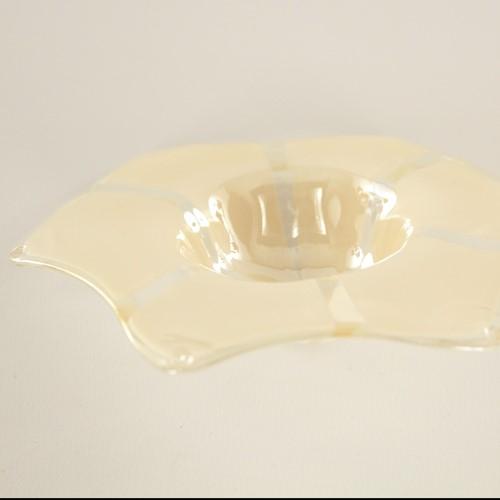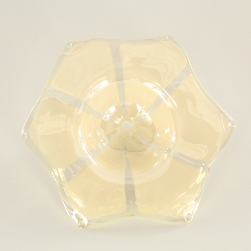 Fiore in vetro di Murano color ambra con dettagli bianchi, Ø150 mm e foro centrale Ø5 mm