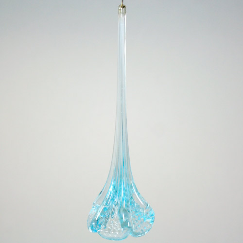 Fiore pendente 12 cm vetro di Murano color acquamare in fogo.