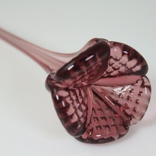 Fiore pendente 12 cm vetro di Murano color ametista scuro in fogo.