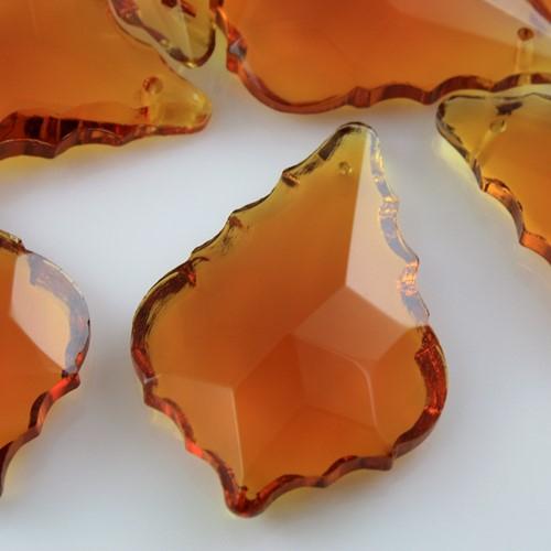 Foglia barocca 38 mm ambra, pendaglio cristallo vetro molato