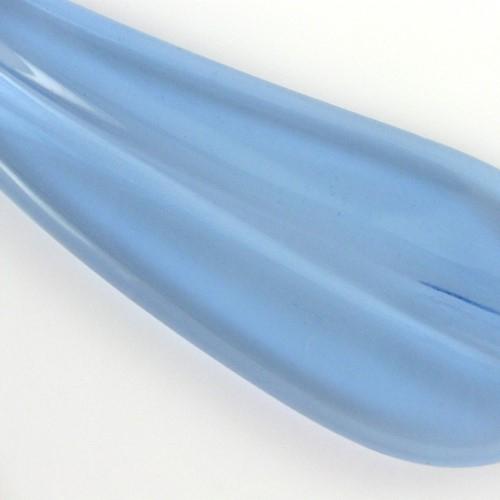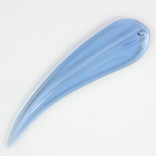 Pendaglio sagomato a forma di foglia piatta lunga pendente, liscia, con misure di 12x3 cm circa, in vetro colorato.