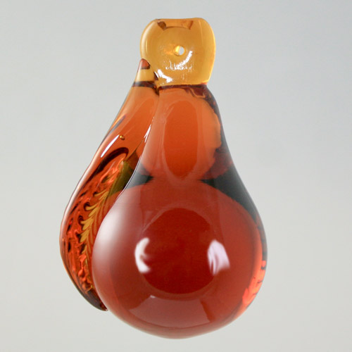 Frutto pendente vetro di Murano. Pera ambra in fogo.