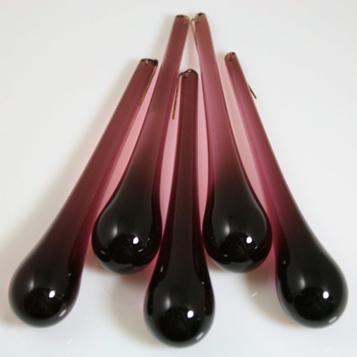 Goccia pendente 100 mm vetro di Murano color ametista scuro in fogo