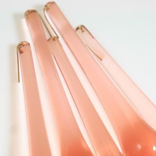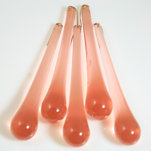Goccia da 100 mm (dieci centimetri) in vetro di Murano color in fuoco. "Color in fuoco" significa che il colore fa parte integrante del vetro, ossia i pigmenti vengono disciolti nel forno al momento stesso della fusione.Questo garantisce colori inalterabili e luminosita' superiori, a differenza di tutti gli elementi, di minor qualita', che vengono colorati a freddo mediante verniciatura esterna. Ogni goccia e' provvista di un tondino d'ottone immerso in sommità, per consentire un rapido e resistente aggancio della goccia a qualsiasi struttura.Tali gocce sono un classico della produzione per l'illuminazione in vetro di Murano, con essi si possono allestire non solo lampadari ma anche composizioni di grande effetto come addobbi, monili e intere installazioni.
