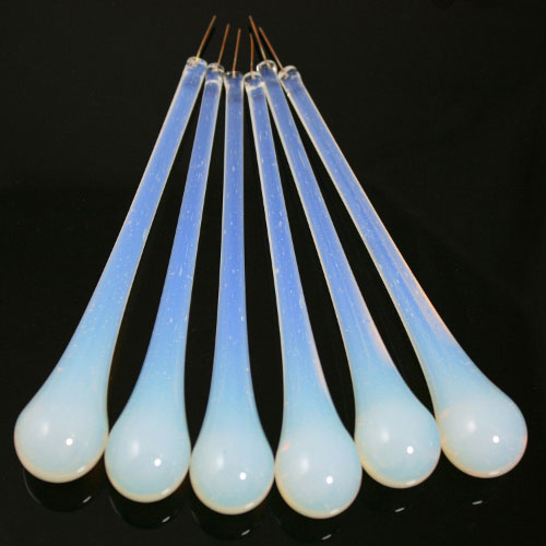 Goccia da 160 mm (sedici centimetri) in vetro di Murano colore opalino in fuoco. Il "color in fuoco" garantisce colori inalterabili e luminosita' superiori, a differenza di tutti gli elementi, di minor qualita', che vengono colorati a freddo mediante verniciatura esterna.