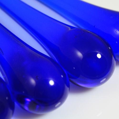 Goccia da 160 mm (sedici centimetri) in vetro di Murano color blu zaffiro in fogo. Il "color in fogo" indica che il colore fa parte della matrice vitrea gia' nel momento della fusione, prima ancora della lavorazione. Questo garantisce colori inalterabili e vivi, a differenza di tutti gli elementi, di minore qualita', che vengono pitturati a freddo con una vernice esterna.