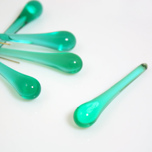 Ogni goccia è dotata di un filo d'ottone immerso in sommità, per consentire un rapido e resistente aggancio.