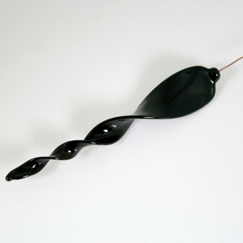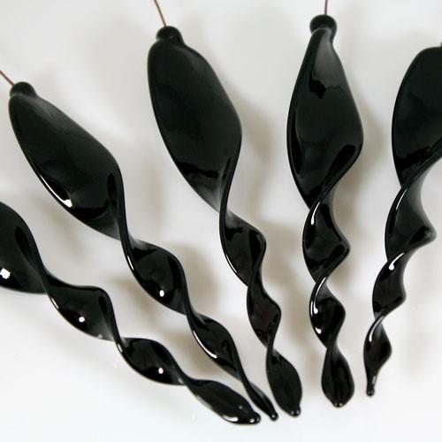 Goccia pendente twist 13 cm in vetro di Murano color nero lucido in fogo