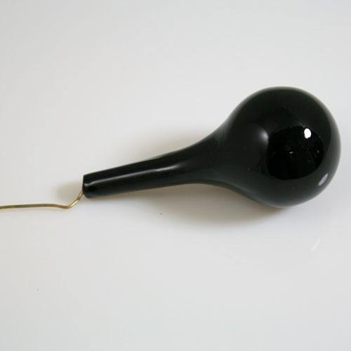 Goccia tonda 55 mm in vetro Murano colore nero in fuoco. La colorazione "in fuoco", tipica del vetro di Murano originale, consente di realizzare colori inalterabili e tonalita' vive e profonde, a differenza degli elementi che vengono pitturati a freddo mediante verniciatura esterna.Con questi pendenti, si possono decorare non solo lampadari in vetro di Murano e articoli da illuminazione, ma anche addobbi, bigiotteria, alberi di natale e intere installazioni per matrimoni ed eventi.Ogni goccia e' dotata di un tondino d'ottone immerso in sommità, per consentire un rapido e resistente aggancio a qualsiasi struttura.