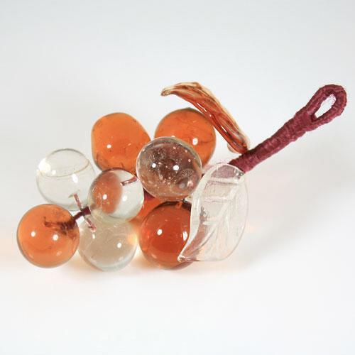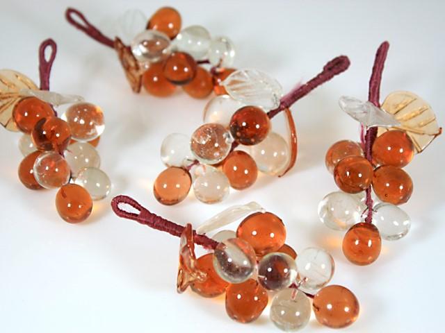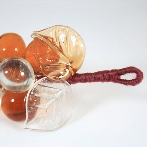 Grappolo d'uva in vetro di Murano fatto a mano, colore ambra e cristallo con filo di seta