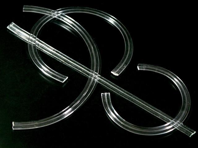 Listello dritto in puro vetro veneziano, color cristallo, lungo circa 50 cm e largo circa 2 cm.