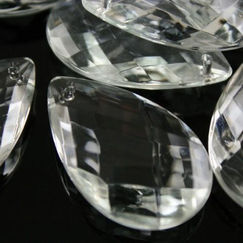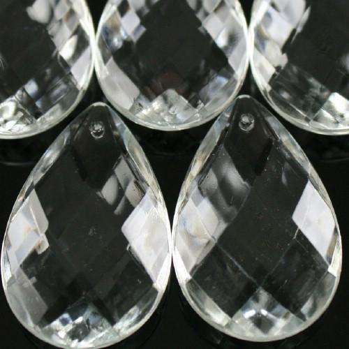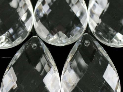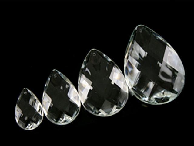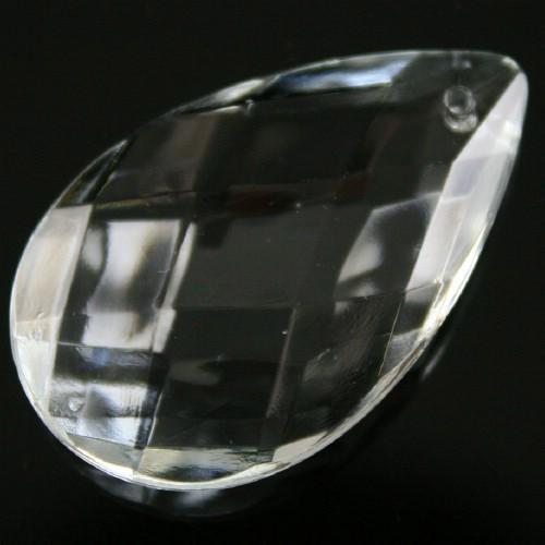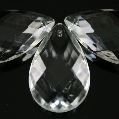 Brillante pendaglio a mandorla sfaccettata con taglio rete in vetro cristallino veneziano. Il pendente è dotato di foro per l'inserimento di spillo o gancio. Queste opere sono utilizzabili oltre che per illuminazione, lampadari murano o cristallo, restauri e opere di luce, anche per raffinate decorazioni o confezioni, nonché per la realizzazione di sofisticati addobbi e allestimento di eventi.