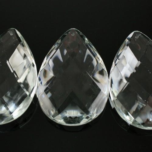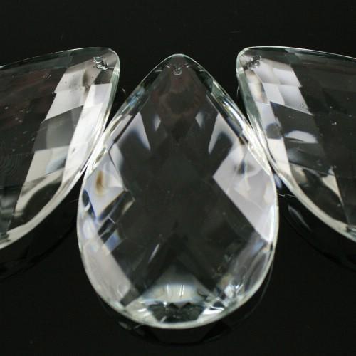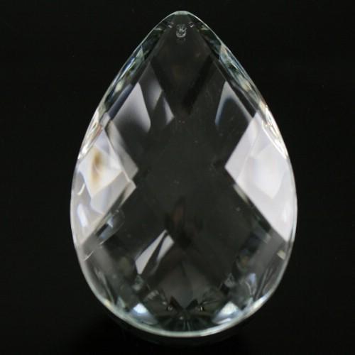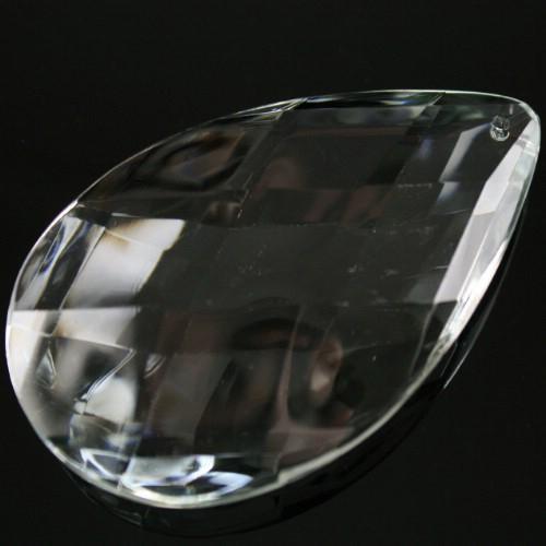 Brillante pendaglio a mandorla sfaccettata con taglio rete in vetro cristallino veneziano. Il pendente è dotato di foro per l'inserimento di spillo o gancio. Sono opere utilizzabili, oltre che per illuminazione, lampadari murano o cristallo, restauri e opere di luce, anche per raffinate decorazioni o confezioni, nonché per la realizzazione di sofisticati addobbi e allestimento di eventi.