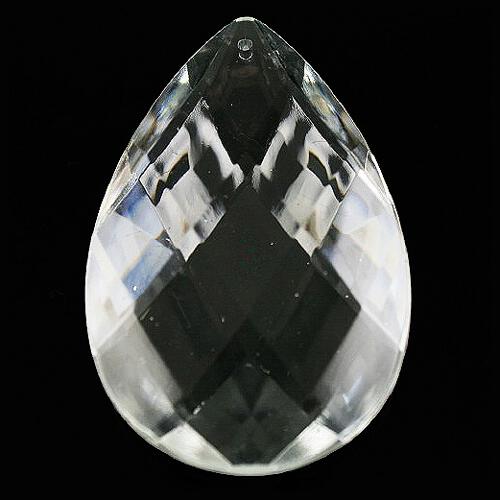 Brillante pendaglio a mandorla sfaccettata con taglio rete in vetro cristallino veneziano. Il pendente è dotato di foro per l'inserimento di spillo o gancio. Sono opere utilizzabili, oltre che per illuminazione, lampadari murano o cristallo, restauri e opere di luce, anche per raffinate decorazioni o confezioni, nonché per la realizzazione di sofisticati addobbi e allestimento di eventi.