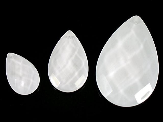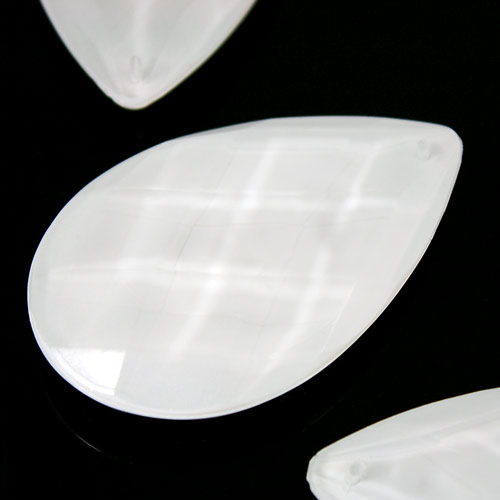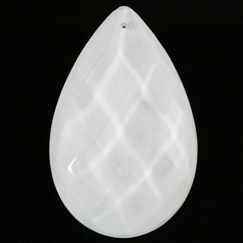 Mandorla 76 mm goccia pendente vetro sfaccettato color bianco latte