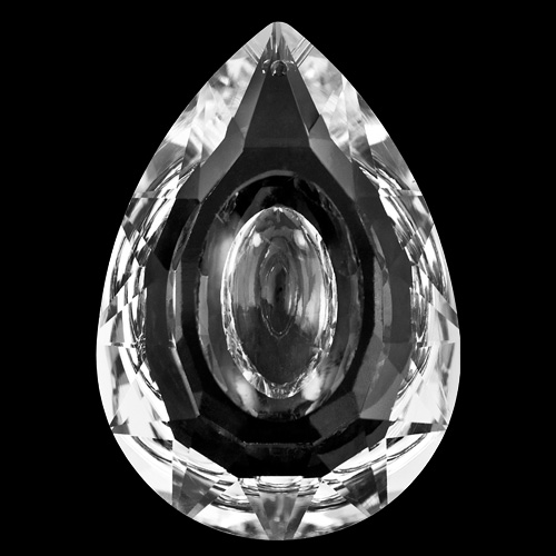 Mandorla a goccia 63 mm in cristallo molato color trasparente.