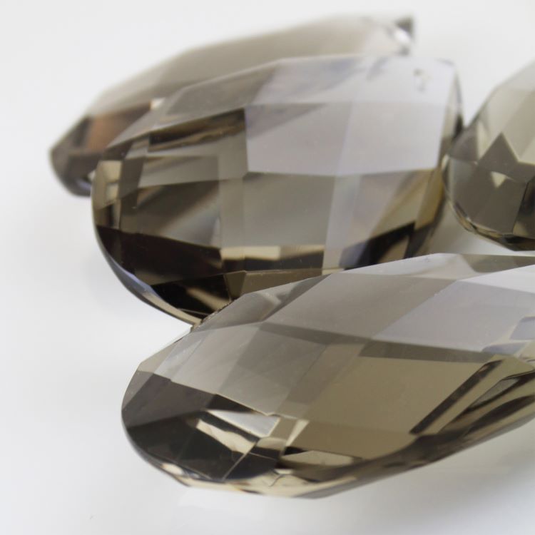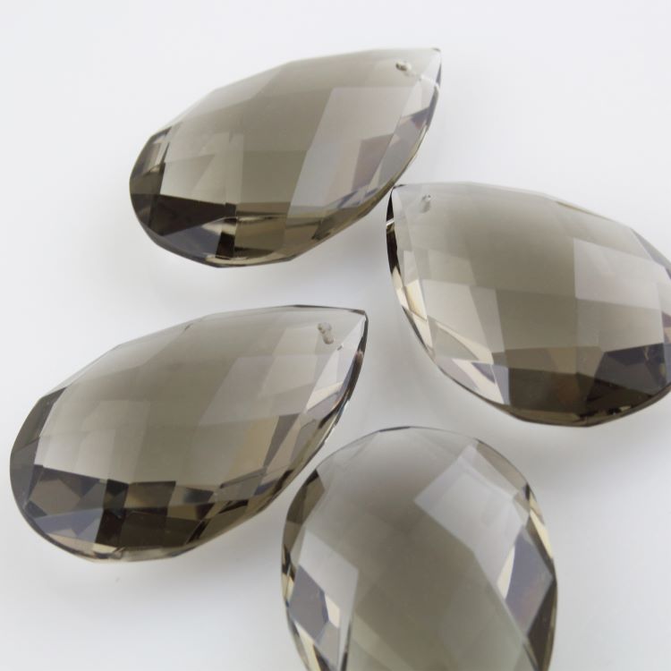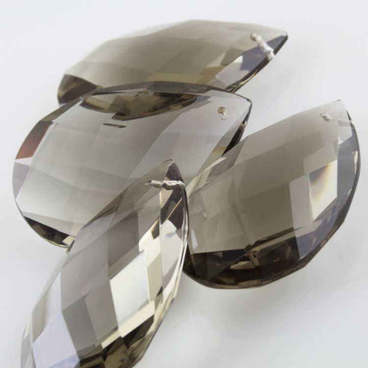 Mandorla in cristallo colorato di Boemia h85 mm grigio. Pendente lampadari anni '50 molato a mano.