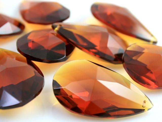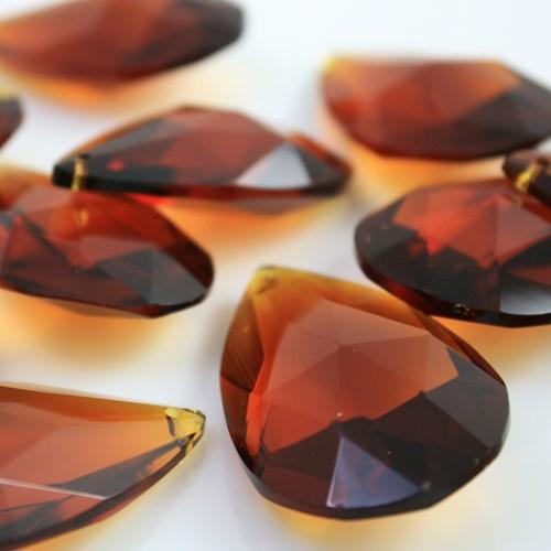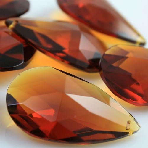 Mandorla cristallo 38 mm colore ambra, goccia pendente sfaccettata.