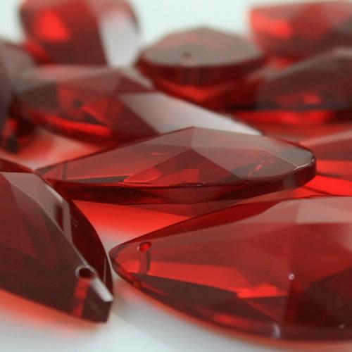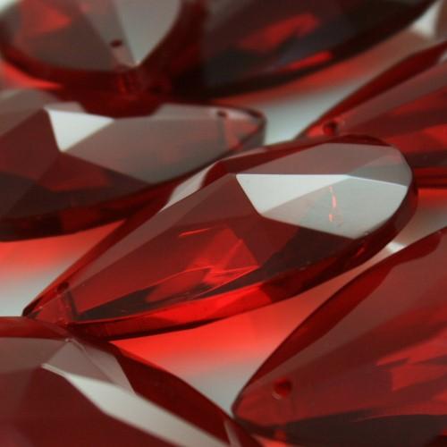 Mandorla cristallo 38 mm colore rosso, goccia pendente sfaccettata.