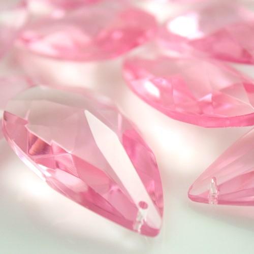 Mandorla cristallo 50 mm colore rosa, goccia pendente sfaccettata.
