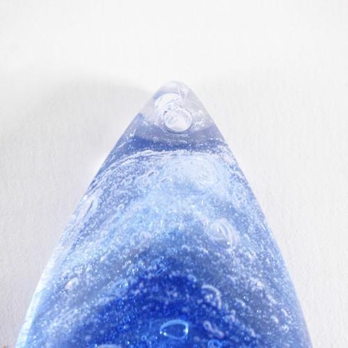 Mandorla pendente liscia 50 mm vetro cristallo molato azzurro blu variegato.