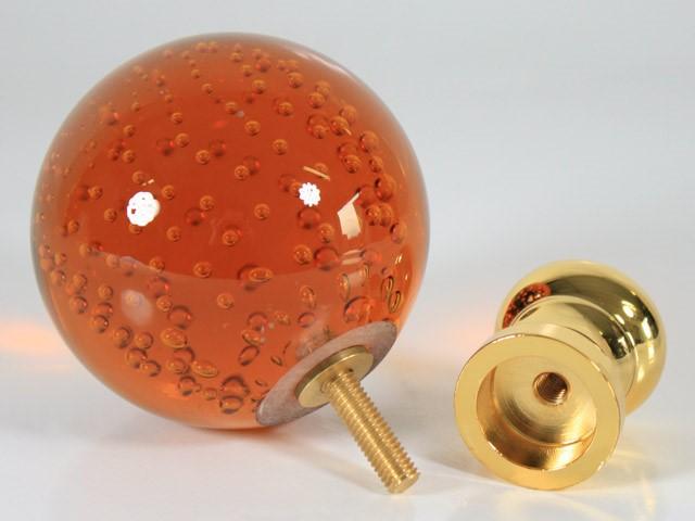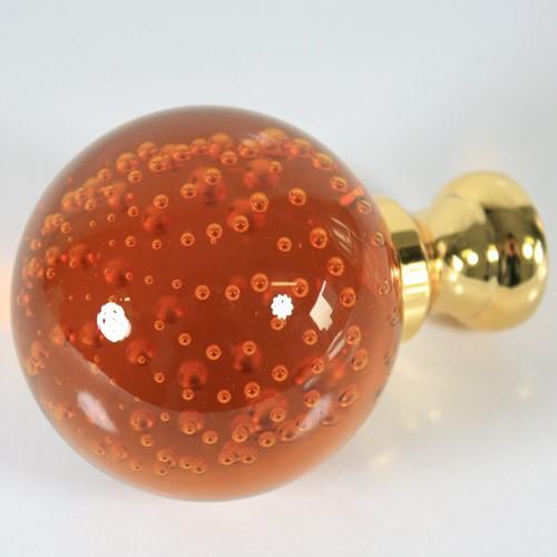 Maniglia pomello sfera ambra disegno pulegoso Ø65 vetro di Murano rocchetto oro.