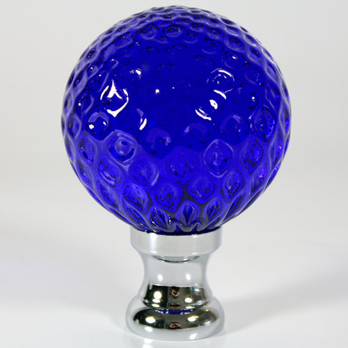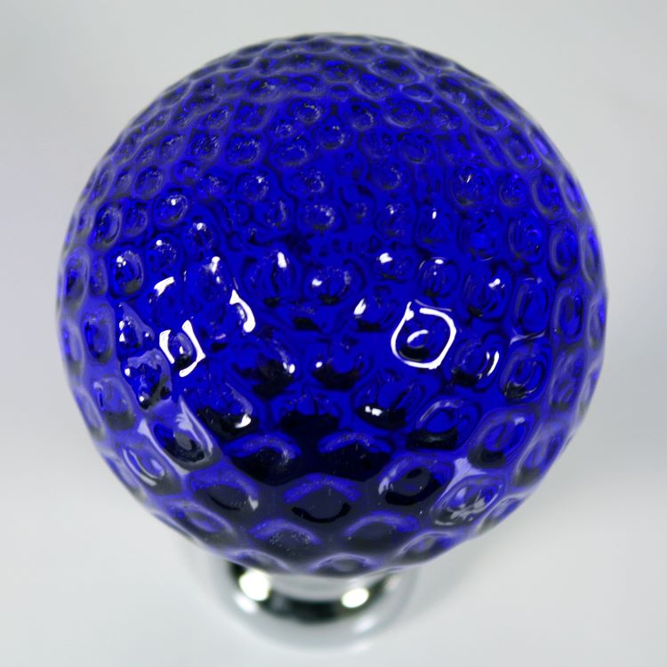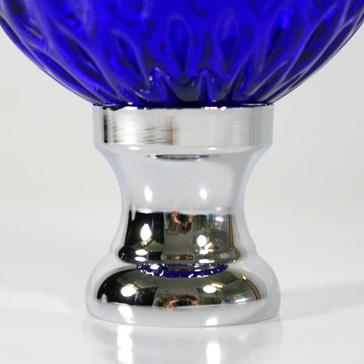 Pomello maniglia Ø65 mm sferico in vetro di Murano, colore blue in fuoco, con attacco metallico a rocchetto finitura nickel.