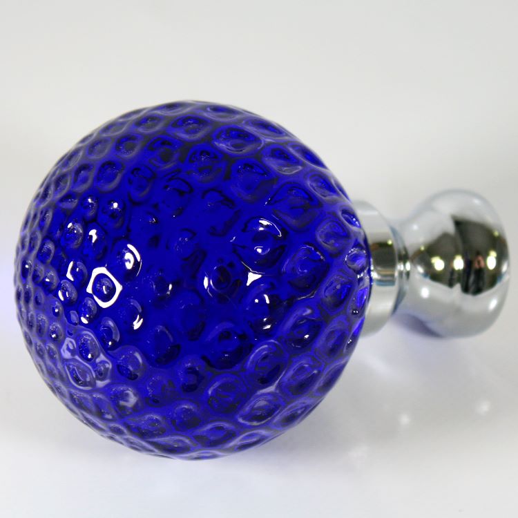Maniglia pomello sfera blue disegno a baloton Ø65 vetro di Murano rocchetto nikel.