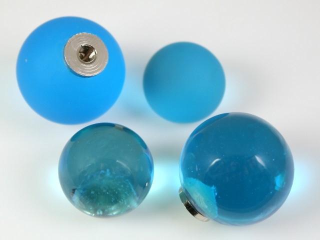 Pomello maniglia sfera Ø 25 mm in vetro di Murano, colore turchese, con innesto femmina M4, finitura satinata.