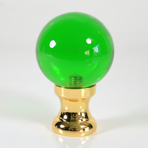 Pomello maniglia Ø50 mm sferico in vetro di Murano, colore verde in fuoco, con attacco metallico a rocchetto finitura ottone.