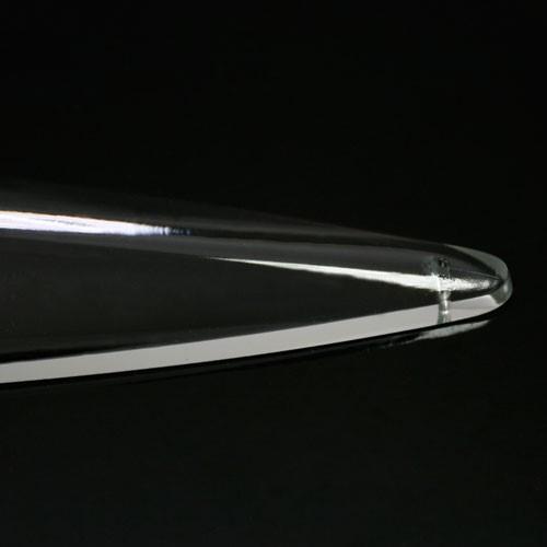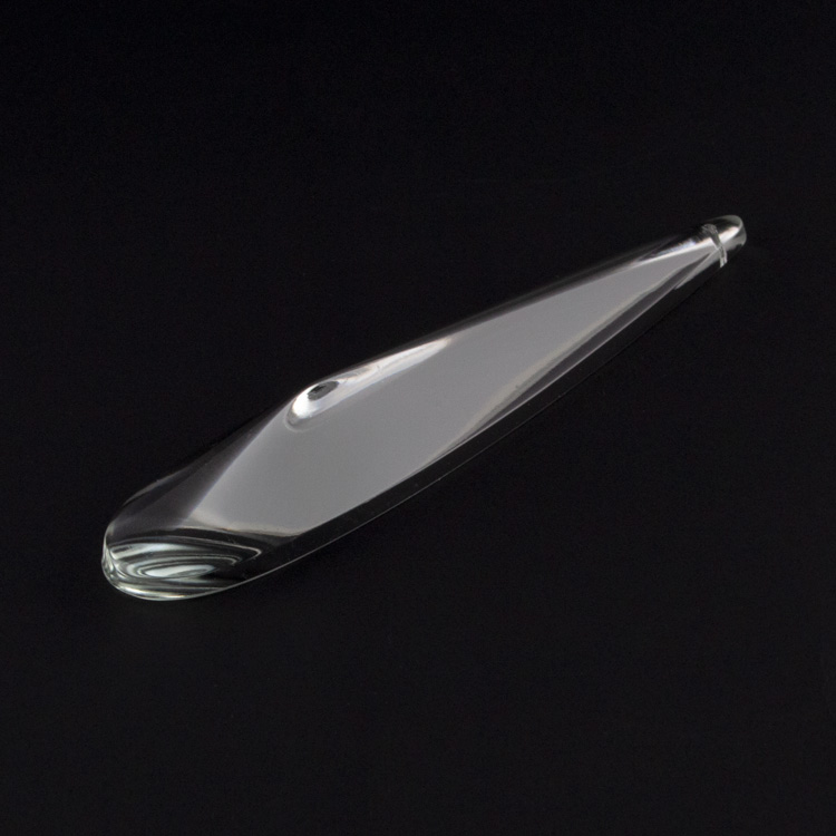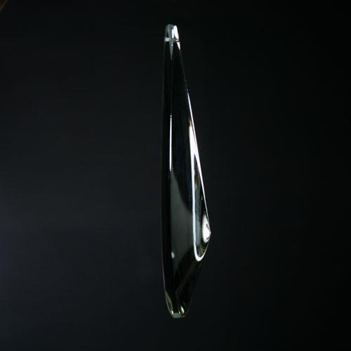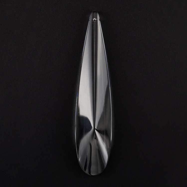 Pendaglio a mezza goccia (mezza in quanto il lato posteriore è piatto) in vetro cristallino cecoslovacco, molato a mano.
