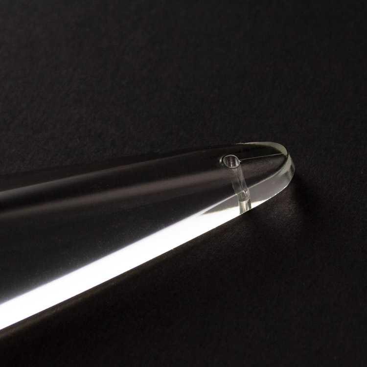Articolo di colore cristallo puro, dotato di foro per l'inserimento di spillo o gancio.