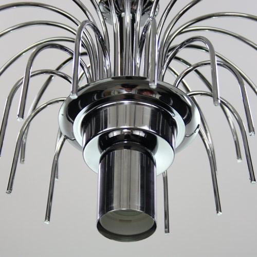 Montatura lampadario a pioggia 1 luce, finitura cromo, diametro 30 cm con 32 zampilli forati e 6 fori nel piatto.