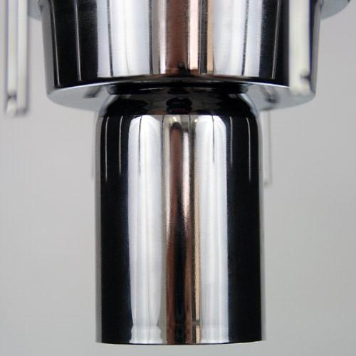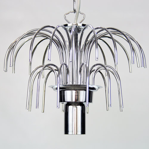 Montatura lampadario a pioggia da soffitto a una luce con attacco E27; struttura forma circolare in ferro nickelato (cromato) brillante e lucente.
