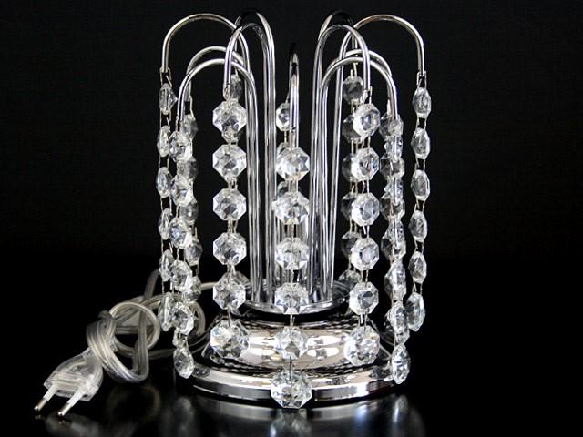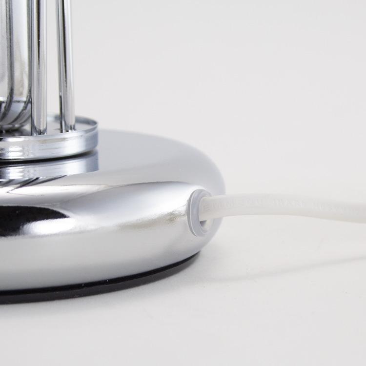 Montatura per lume da tavolo o comodino ad 1 luce (attacco E14) a pioggia in acciaio nickelato.