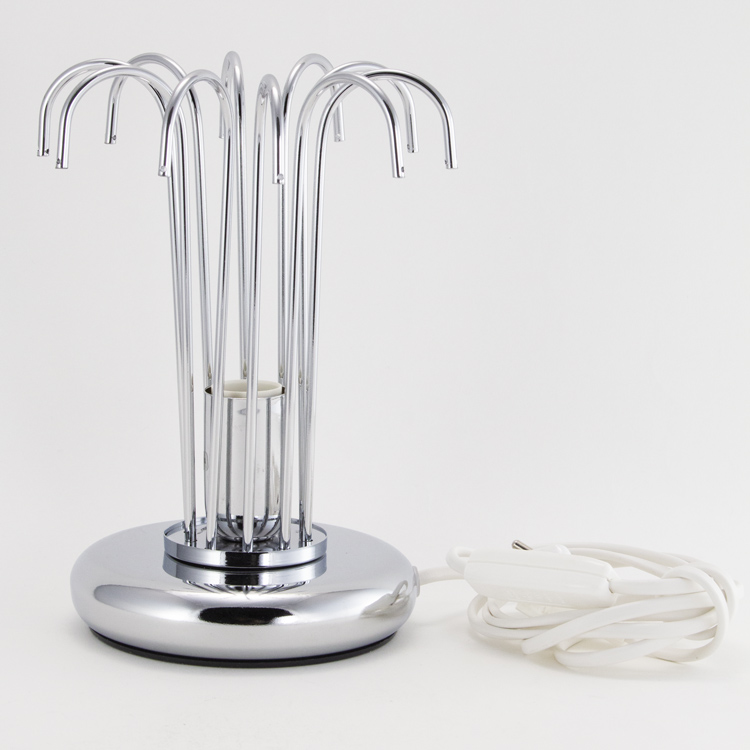 Montatura lumetto a pioggia, 1 luce, finitura cromo, altezza 22 cm con 10 zampilli forati.
