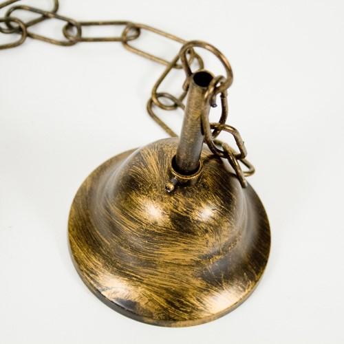 Il prodotto presenta una finitura bronzo anticata oro, molte altri kit di rosone, catena e portalampada in ferro resistente e dall'effetto lucido.