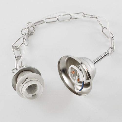 Montatura sospensione lampada E27 cromo lucido corona con catena e cavo elettrico bianco