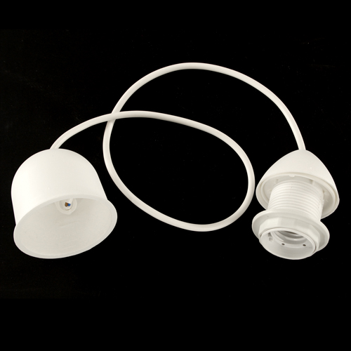Montatura sospensione lampada E27 rosone con cavo colore bianco in pvc