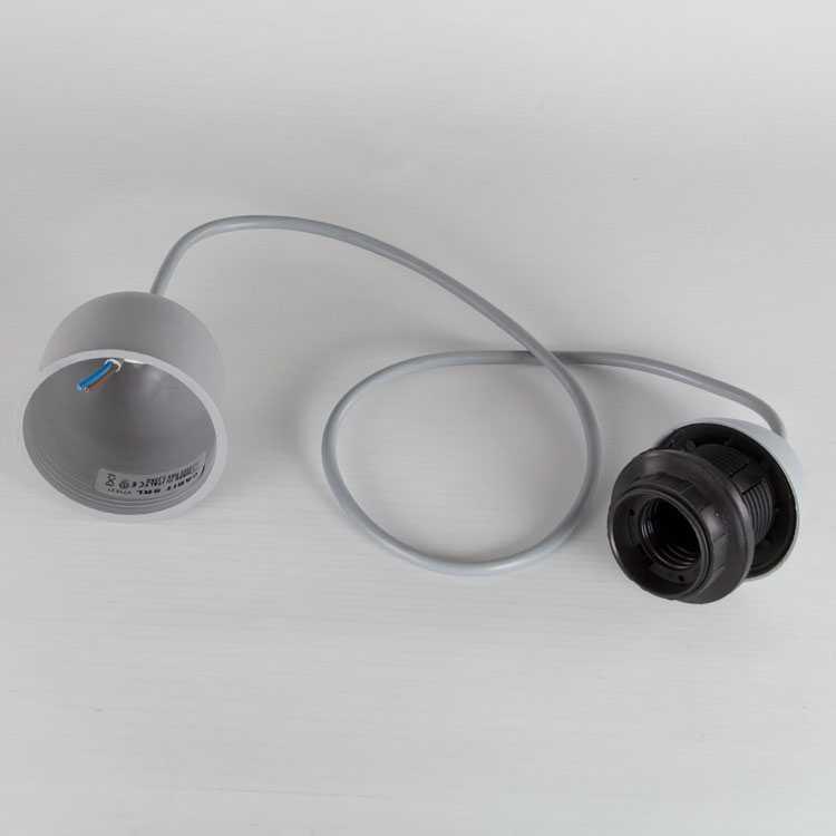 Montatura sospensione lampada E27 rosone con cavo colore grigio in pvc