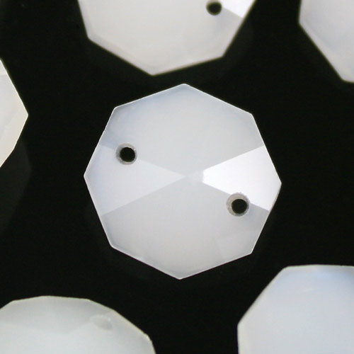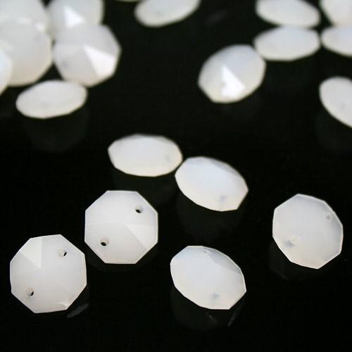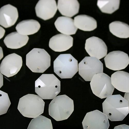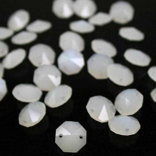 Ottagono 14 mm bianco seta vetro cristallo molato 16 facce 2 fori.