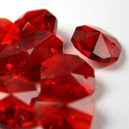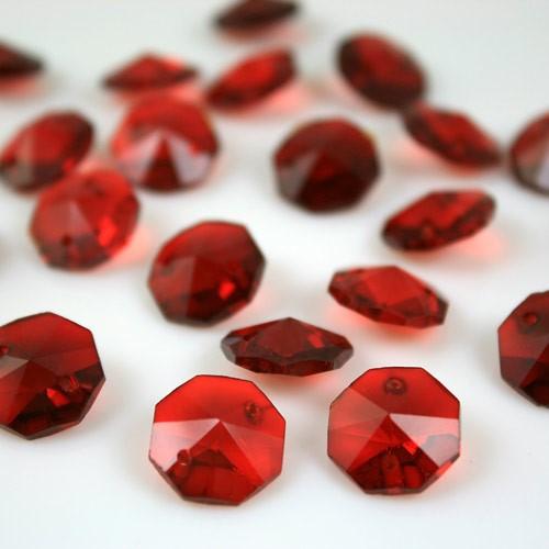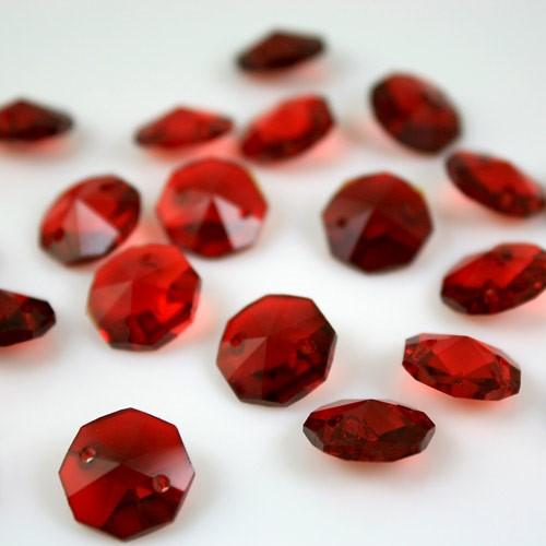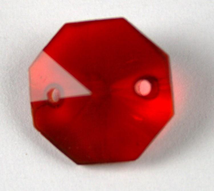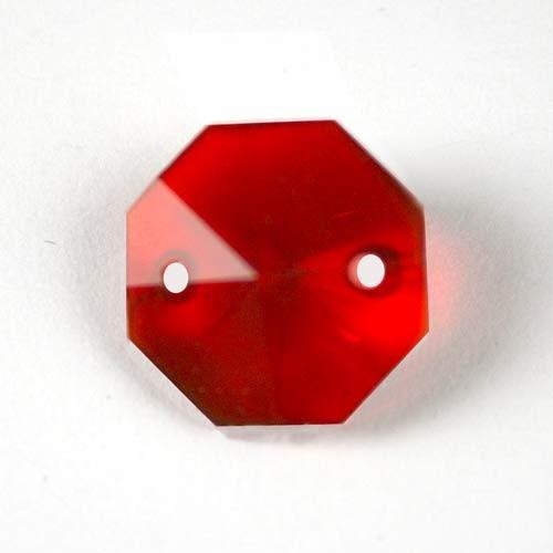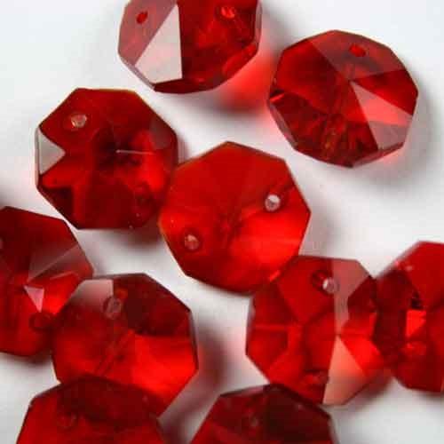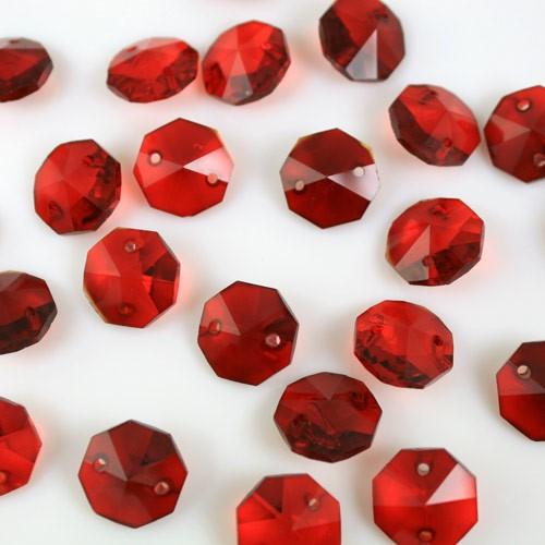 Ottagono 14 mm rosso vetro cristallo molato 16 facce 2 fori.